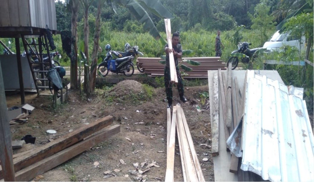 Diketahui, terlihat semangat kekompakan Tim Satgas mengangkat bahan-bahan bangunan yang rencananya akan digunakan untuk merenovasi rumah yg tak layak huni.