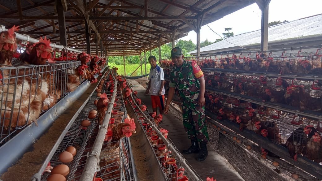 Dalam kunjungan ini, anggota Satgas TMMD ke 122 Kodim 0914/TNT membantu warga pemilik peternakan dalam mengumpulkan telur ayam, memberi pakan ayam, dan membersihkan area peternakan.