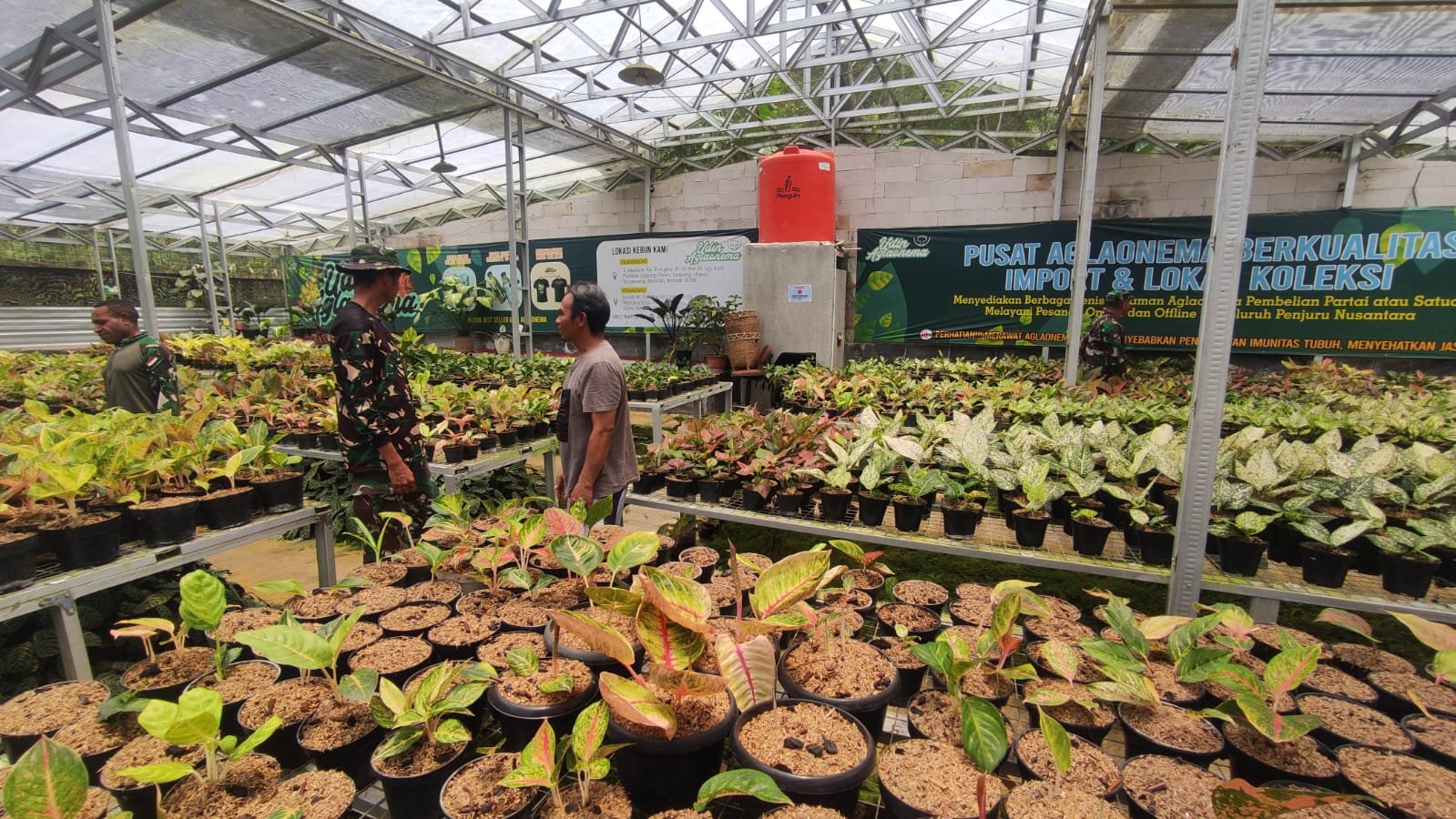 Nampak obrolan anggota Satgas TMMD Prada Bayu sangat serius tapi santai tentang tanaman hias Aglonema yang kebetulan sangat suka juga dengan Aglonema.
