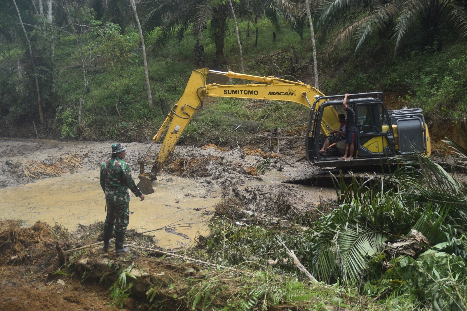 Satgas TMMD ke 122 Kodim 0420 Sarko Pantau Pembuatan Sawah Program Ketahanan Pangan