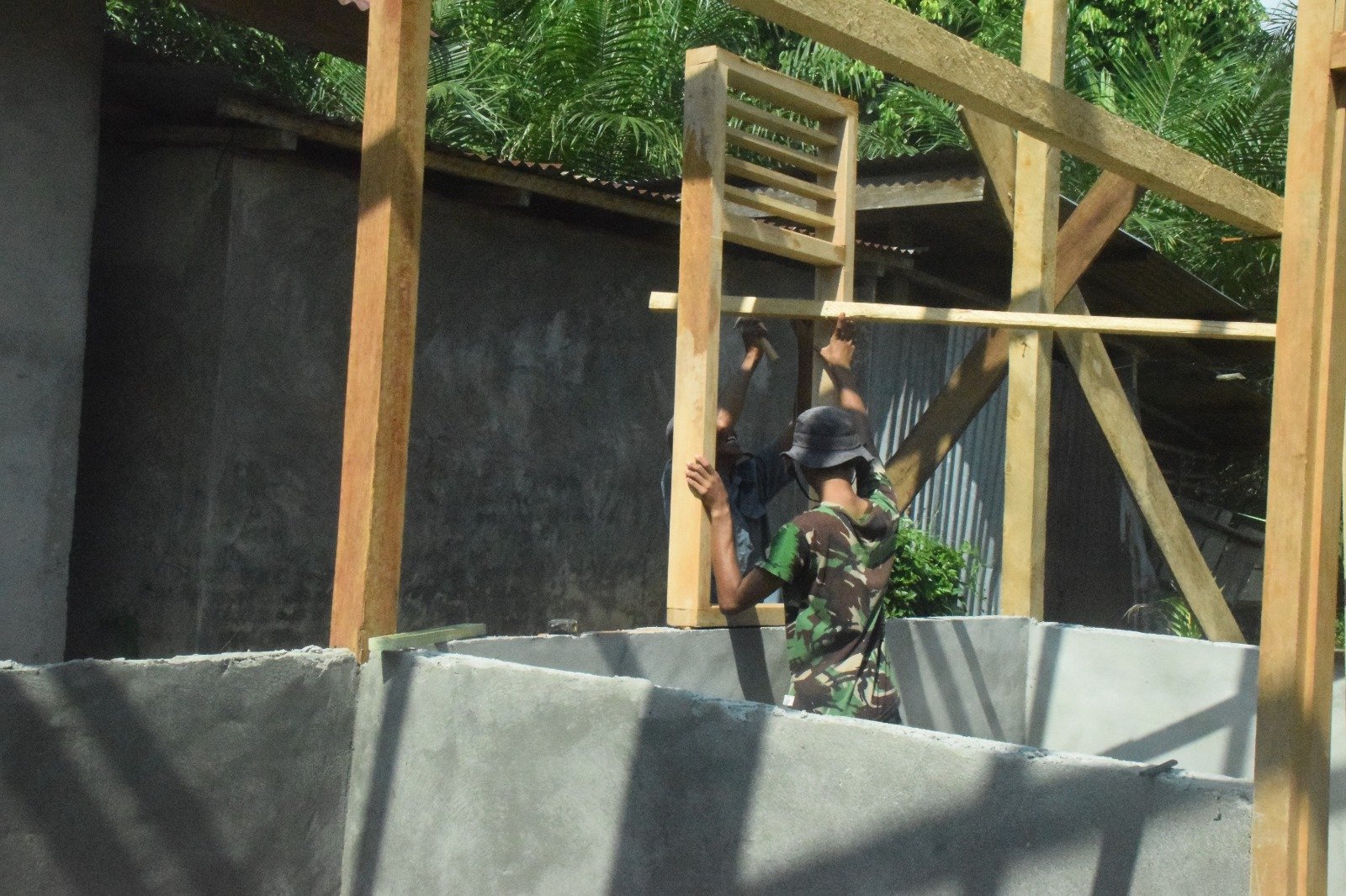 “Hari ini target kita memasang kusen jendela dan pintu, kemarin kita telah selesai memasang atap”jelas Lettu Limbong Rabu (8/10/2024).