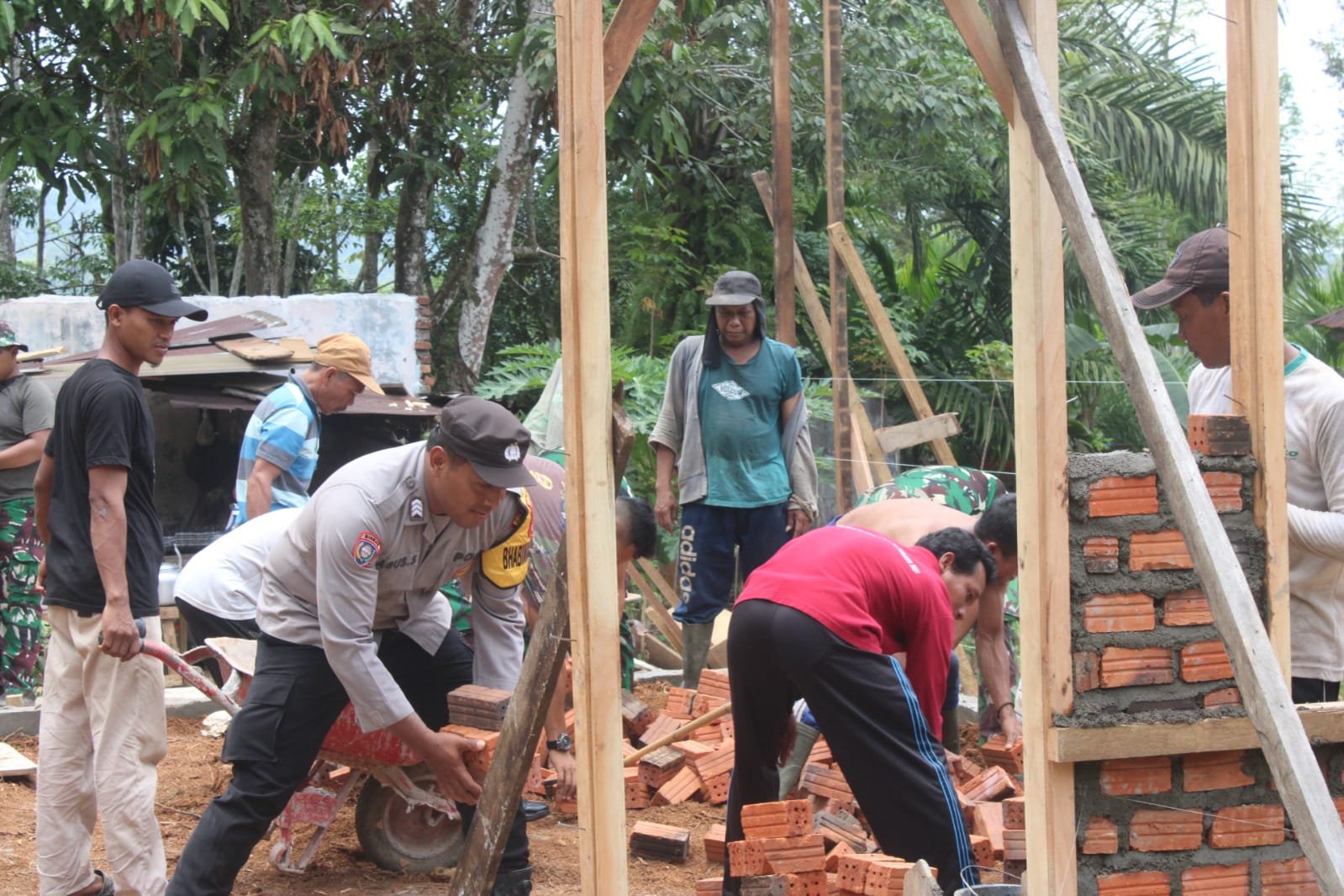 Mereka bahu membahu dalam membangun rumah layak huni milik Bapak Hendrik Niklas Pamtiwo yang berada di Desa Talang Sebaris Dusun 3, Selasa (8/10/2024).