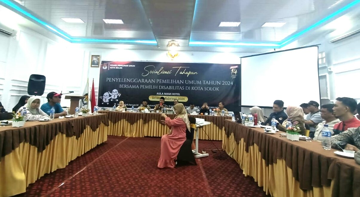 Solok, (Utamapost) – Untuk menyukseskan Pemilu 2024, Komisi Pemilihan Umum (KPU) Kota Solok merangkul pemilih disabilitas dengan mengelar Sosialisasi Tahapan Penyelenggaraan Pemilihan Umum tahun 2024 bersama pemilih disabilitas di Kota Solok, pada Selasa (06/02/2024), bertempat di Aula Mami Hotel.