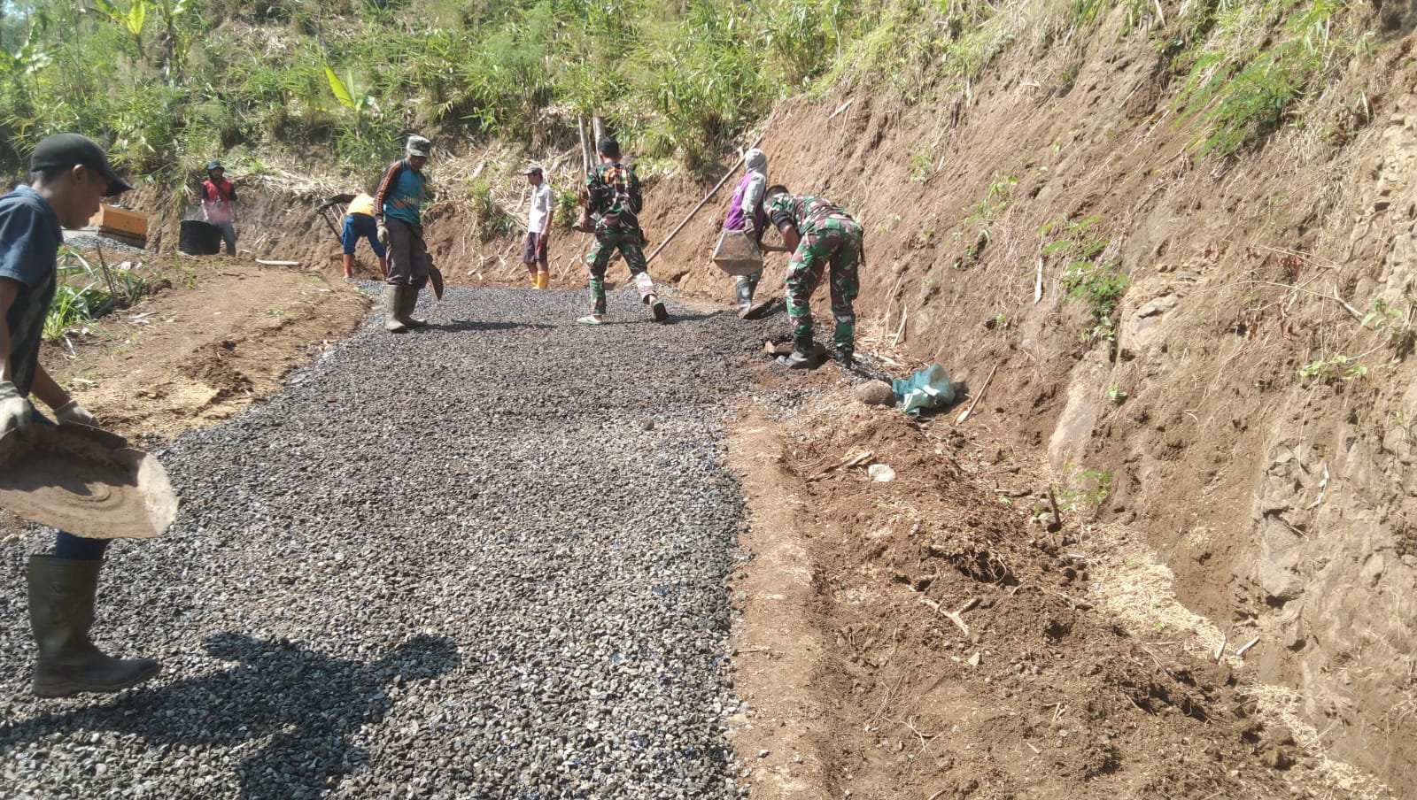 “ Masuk hari kesebelas semenjak dibukanya program TMMD ini, kami sudah fokus melaksanakan pengaspalan jalan, mudah-mudahan cuaca mendukung sehingga hasil bisa maksimal,” Ujar Danramil.