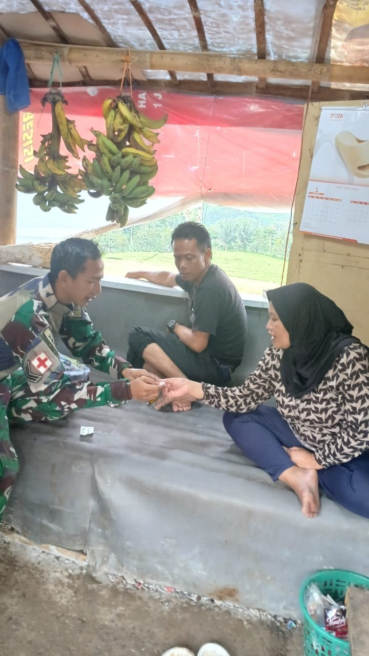 Cipelah, Kab. Bandung – Program TNI Manunggal Membangun Desa (TMMD) ke-127 Kodim 0624/Kab. Bandung tak hanya fokus pada pembangunan infrastruktur fisik, tetapi juga memberikan perhatian serius pada peningkatan kualitas hidup masyarakat, salah satunya melalui pelayanan kesehatan. Pada Jumat, 13 Februari 2026, Tim Kesehatan TMMD menggelar pemeriksaan kesehatan gratis bagi warga Kampung Simpang Gunung Leutik RT 02 RW 03 Desa Cipelah Kec. Rancabali Kab. Bandung.