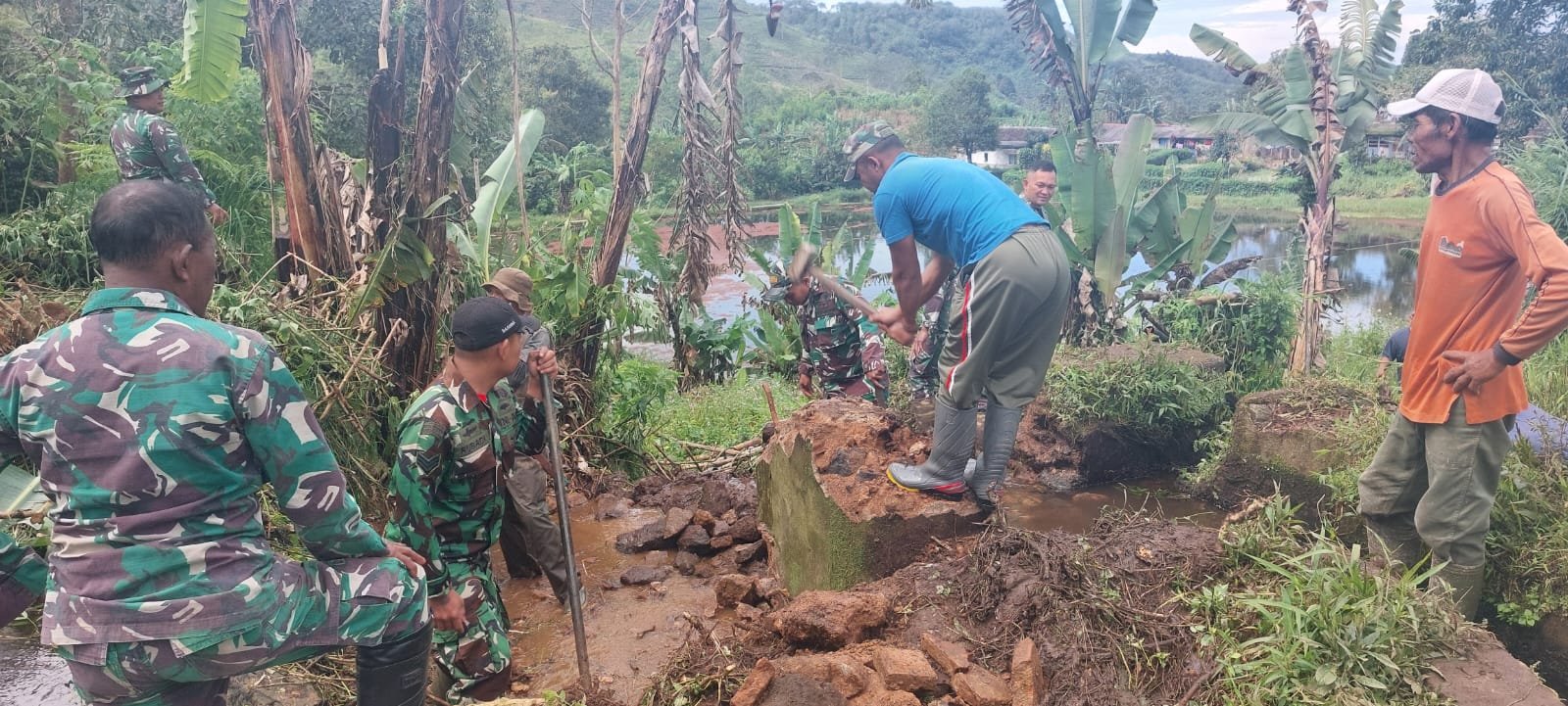 Pada kesempatan yang sama, Dansatgas TMMD ke-127 Kodim 0624/Kabupaten Bandung, Letkol Kav Samto Betah, S.Hub., Int., menyampaikan bahwa kegiatan ini merupakan bagian dari upaya nyata dalam mewujudkan desa yang mandiri dan sejahtera. “Kami sangat bangga melihat semangat kebersamaan dan kerja keras dari seluruh anggota dan masyarakat. Pembangunan sarana air bersih ini sangat penting, karena air adalah kebutuhan utama yang harus dipenuhi untuk mendukung kehidupan masyarakat,” ujarnya.