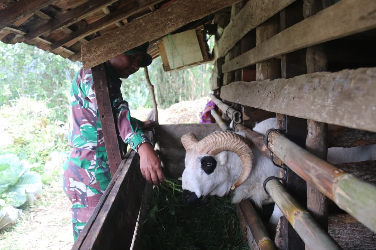 Cipelah, Kab. Bandung – Program TNI Manunggal Membangun Desa (TMMD) Reguler Ke-127 Kodim 0624/Kab. Bandung terus berupaya meningkatkan kesejahteraan masyarakat melalui berbagai kegiatan, baik fisik maupun non-fisik. Pada hari Minggu, 22 Februari 2026, anggota Satgas TMMD Serma Choirul bersama Babinsa Serda Taryana melaksanakan pengecekan bantuan ternak domba sebanyak 5 ekor kepada kelompok tani Sukaati Makmur di Kampung Sukaati Desa Cipelah Kecamatan Rancabali Kabupaten Bandung. Bantuan tersebut diterima oleh Bapak Utep, perwakilan dari kelompok tani.