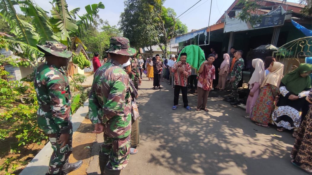 Personel Satgas TMMD yang hadir membaur dengan masyarakat maupun sanak saudara yang melayat dengan penuh rasa duka, Seperti diketahui, Desa Tambi merupakan lokasi pelaksanaan TNI Manunggal Membangun Desa (TMMD) Ke 122 Kodim 0711/Pemalang.