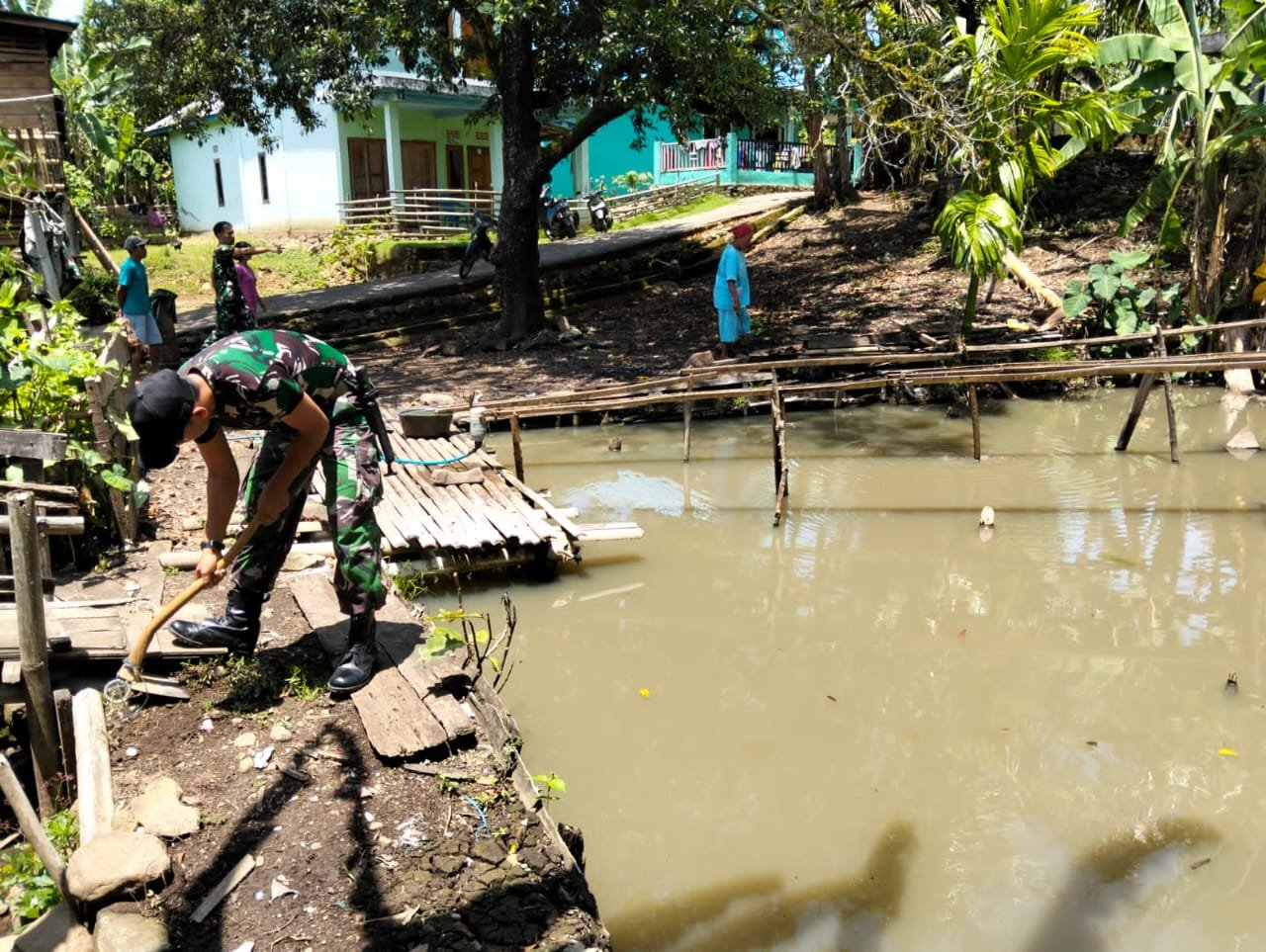EMPAT LAWANG (UtamaPost)– Beberapa anggota Tentara Nasional Indonesia (TNI) Manunggal Masuk Desa (TMMD) ke 122 Kodim 0405/Lahat, dibantu warga Desa Lampar Baru, Kecamatan Talang Padang, Kabupaten Empat Lawang meninjau sekaligus membersihkan lingkungan sekitar kolam ikan yang akan dijadikan budidaya Nila.