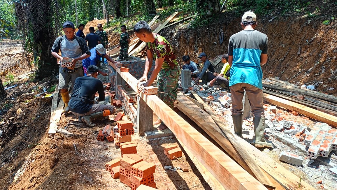 Warga dan Anggota Satgas TMMD ke 122 Kodim 0420 Sarko Gotong Royong Bangun Kandang Kambing