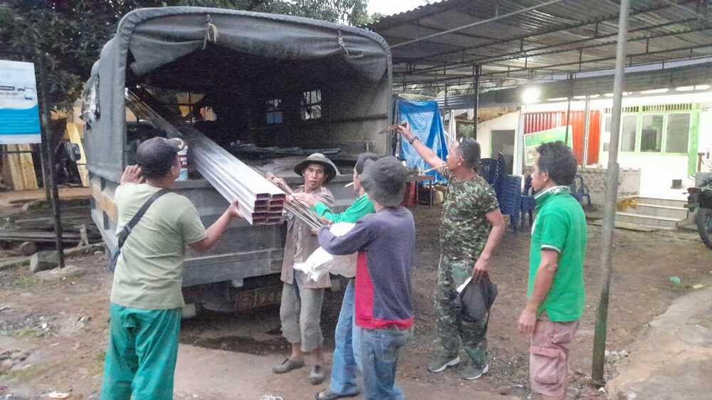 Berdasarkan pantuan, sejumlah warga ikut membantu mengangkut serta menurunkan material, yang dibutuhkan sasaran fisik ke dalam posko.